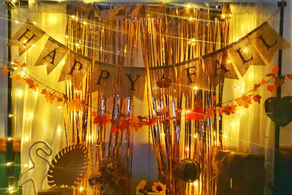 I have two sets of big waterfall fairy lights. One set in my bedroom spread across both of my windows and one set downstairs on the backdrop at the back of the lounge with our little fall decor spot! Putting them on at night really does transform the rooms and makes us feel so cosy and Autumnal.