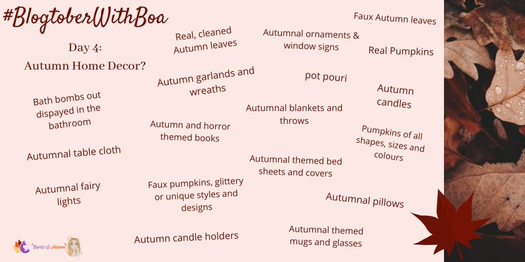 For day four of #BlogtoberWithBOA here is my Autumn home decor. I absolutely love the warm colours, faux pumpkins, acorns, pine cones, sunflowers and leaves. Creating wreaths, garlands and getting all of the fairy lights back on is the ultimate way to create a cosy Autumn atmosphere! Below are some ideas of Autumn home decor, followed by this years decor in my home.