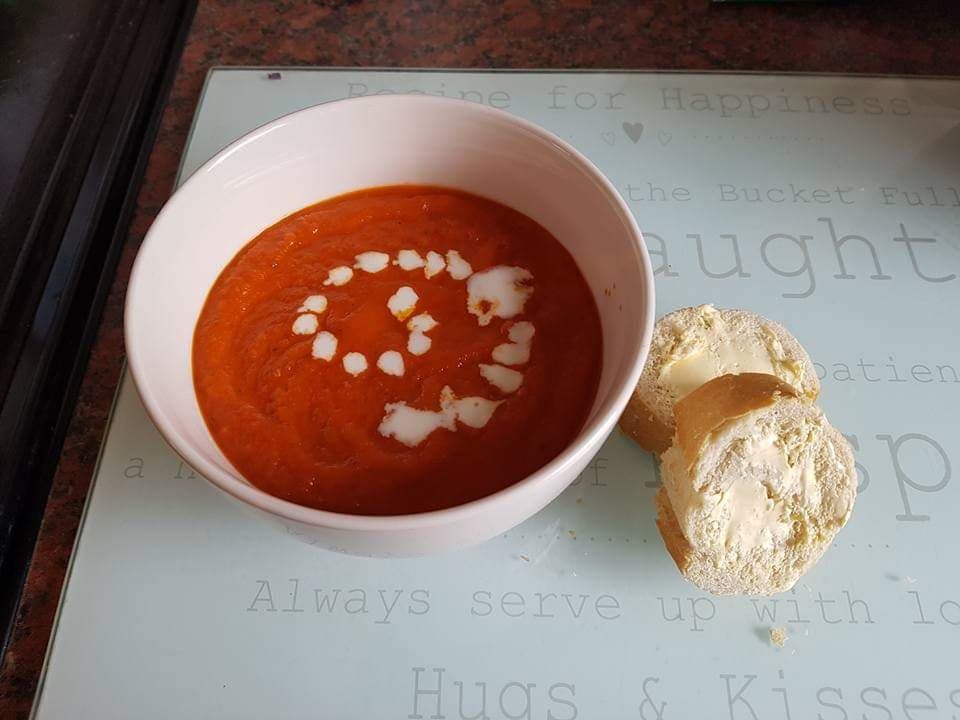 Red pepper, roasted tomato and mixed veg soup