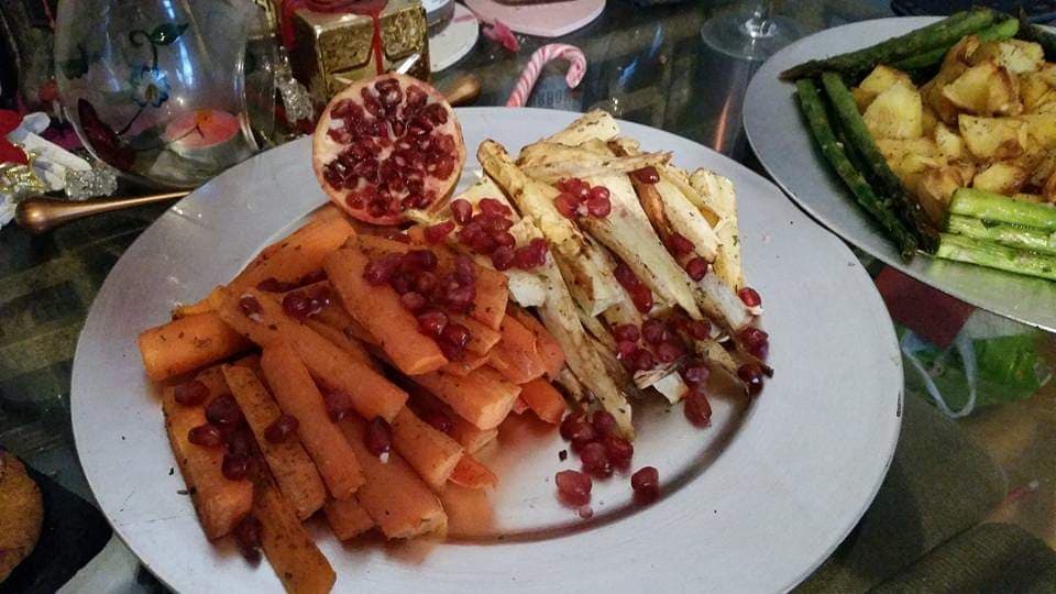 There is nothing better than some roasted carrots and parsnips topped with a sweet kick of pomegranate seeds.