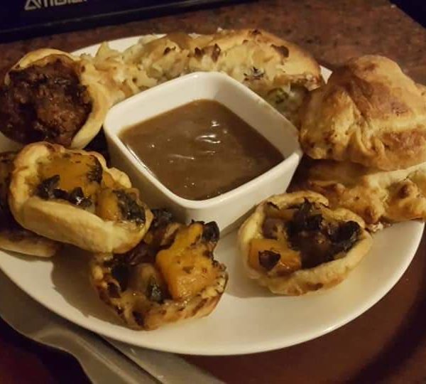 Mini Christmas style tarts with dipping gravy
