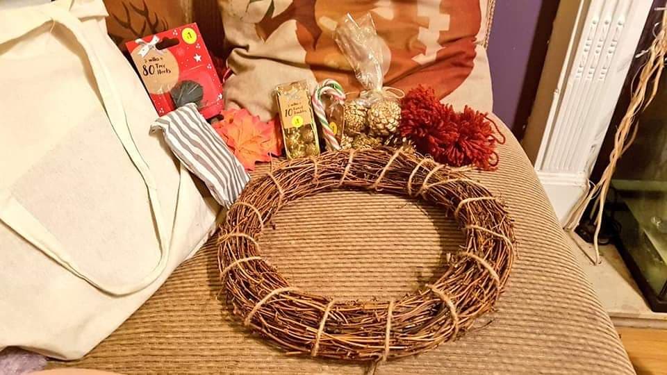 I made pompoms from scratch and thought it would be lovely to add them to the wreath to make it even more of a unique personal creation.