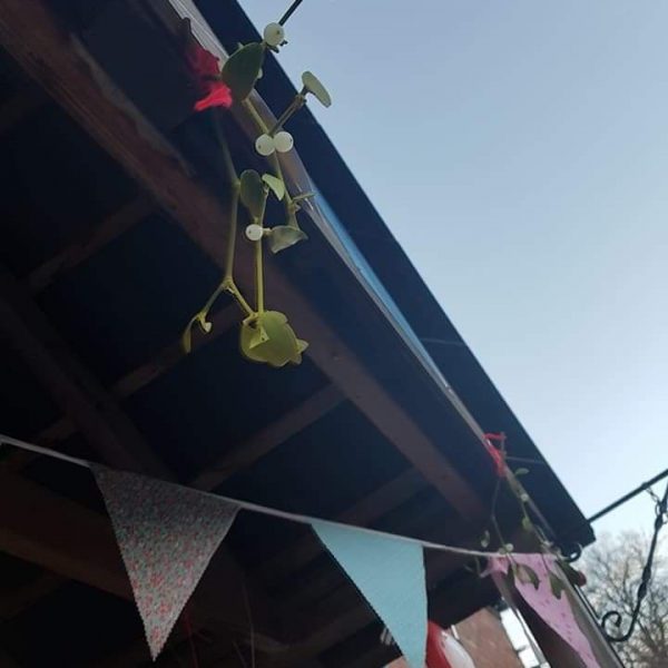 After ages of having ‘kiss under mistletoe’ on my bucket list, my partner and I finally found some at a thrift store/market we visited.