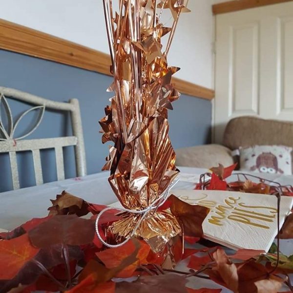 As you can see I added a lovely autumnal touch with the coppers and fake leaf garlands. They go perfectly in the middle of the table to bring the decor into one.