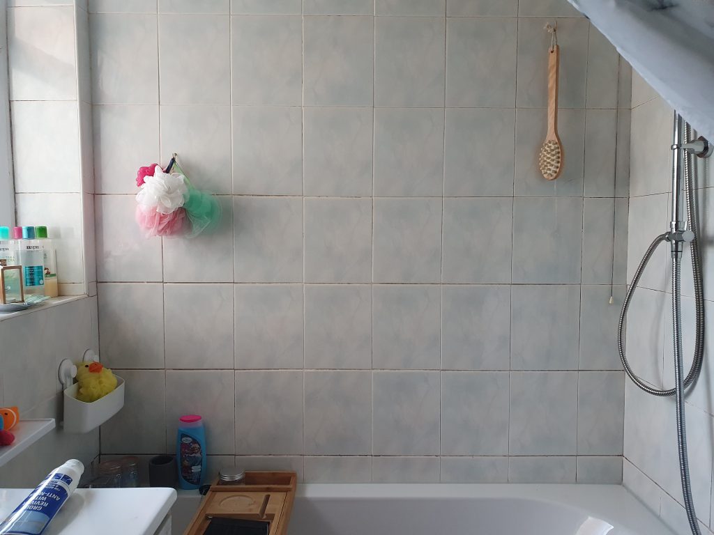 Repaint. If you’re working with a small budget, a fresh coat of paint can make a big difference. Bathrooms can often feel cold, bland, and boring. Repainting freshens up a bland bathroom, can warm up a cold-feeling room, or brighten a dark bathroom. If your tiles are dated, dark, or dingy, these can be painted too. Use proper tile paint so water won’t damage them, but you can really change the look of your bathroom for the price of a tin of paint. It saves hundreds on tile replacements! We had a spot of damp on our ceiling due to the extractor fan no longer working so we scraped off, washed well and repainted with anti mould and damp paint. Good as new!