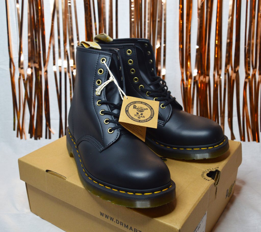 Although I have docs, they are in my shoe cupboard and I wanted to rave about these new ones my boyfriend ‘L’ got recently. Him being 6ft and me being less than 5ft means that obviously these don’t fit me! but I still love them just as much hehe. These are the vegan docs that so many people are raving about. They’re perfection. Being vegan, I’m psyched that these have been created and they’re actually cheaper than originals which is ace! I had to feature them on this post since we’re on the topic of rad shoes.
