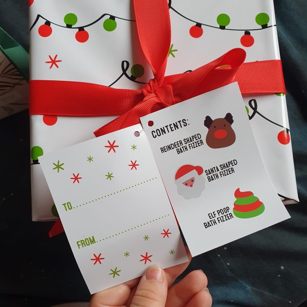 I have used this gift box for multiple gifts. I have kept the ‘Elf poop’ for myself as a little pressie for me and then used the two other bath bombs for other people as it was much more value for money to buy the set than to buy individual!