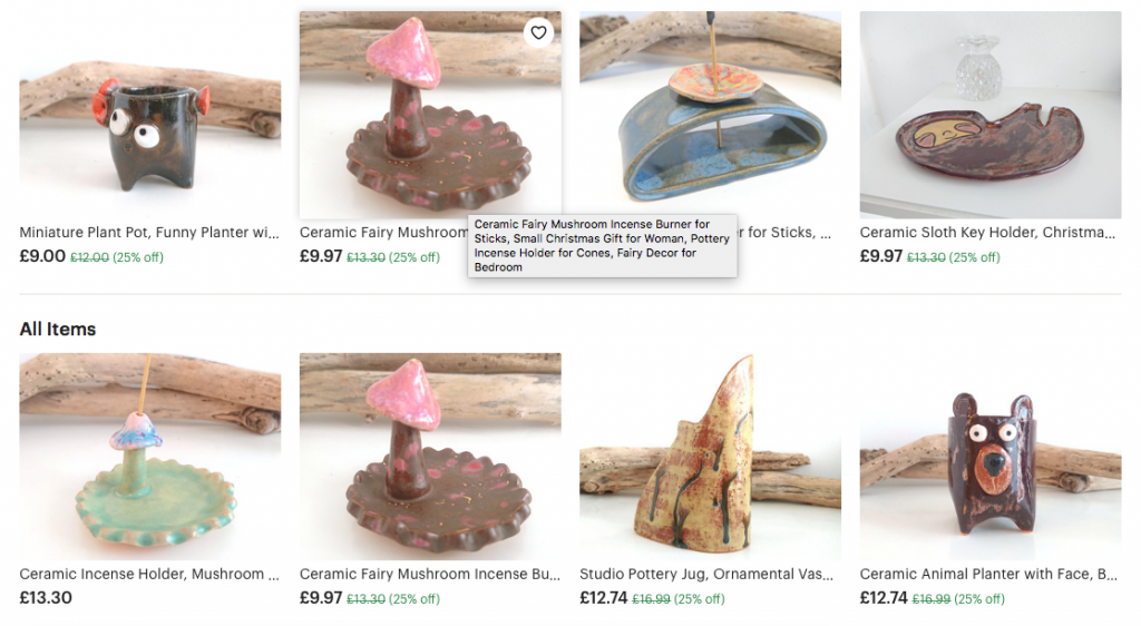 Even-Star Hancock Ceramics is a lovely little business that makes unique looking, quirky gifts including incense burners, trinket trays, jugs, plant pots and various bits to fill your life with joy and fun! I cam across them Etsy and adore them.