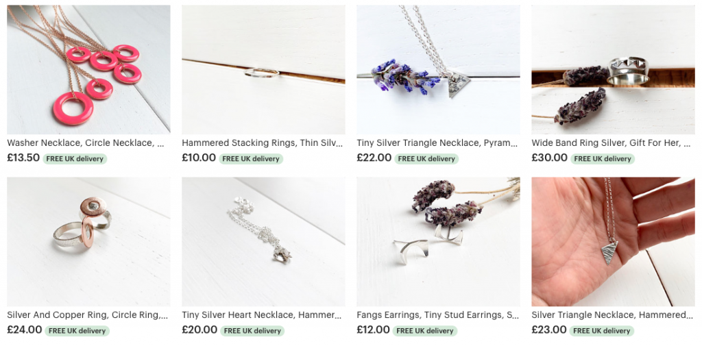 Amy Marie Jewellery makes and sells all things Handcrafted bespoke jewellery. There really is something for everyone and I think they are super unique and beautiful. Amy is originally a footwear designer but decided to embrace her love of creating crafts by launching this line of beautiful, unique jewellery! I’m so glad she did. Her Etsy only has a small number of sales but I’d love to change that as her jewellery is so beautiful!