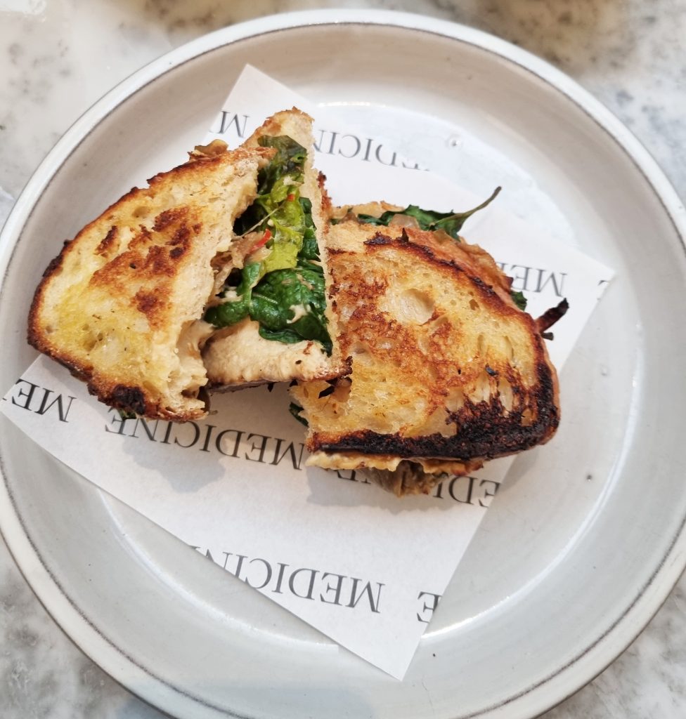 So for my main choice I decided to go for the Aubergine & Cumin grilled sourdough sandwich. I am very picky when it comes to aubergine so I was taking a gamble. It has to be cooked just right and my goodness it was. It tasted so good and the textures of the aubergine, greens, caramelised onion and cashew cheese on the buttery charred sourdough was extraordinary. I find myself craving this sandwich which clearly means they hit the right note with my taste buds.