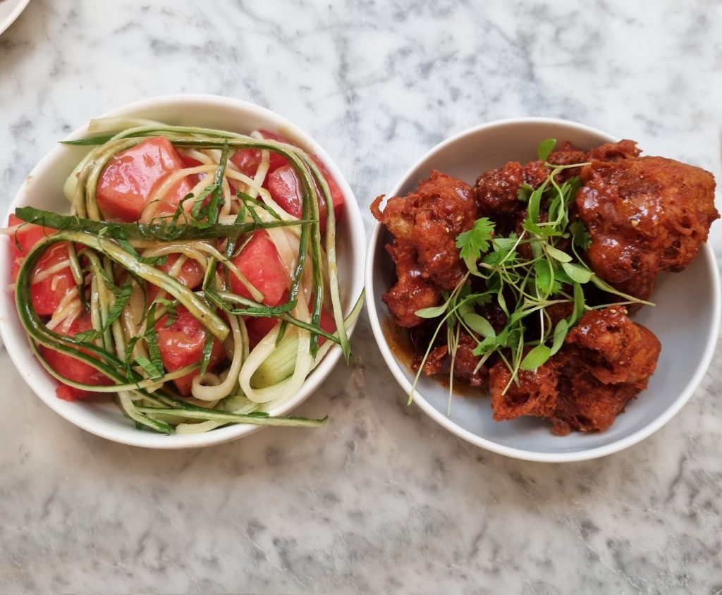 To accompany my sandwich and to try some more vegan options to review, I went for the ‘fried cauliflower wings’ and the ‘watermelon salad’. Both were honestly delicious. The watermelon salad sounds like such a bizarre thing from anything else I’ve had but oh my, it was lovely and refreshing with the cucumber noodles and drizzle. The cauliflower wings were coated in a gorgeous spicy sauce and had a beautiful crunch, bringing great texture and flavours which were nicely cooled by the watermelon. My mouth is watering as I write this!
