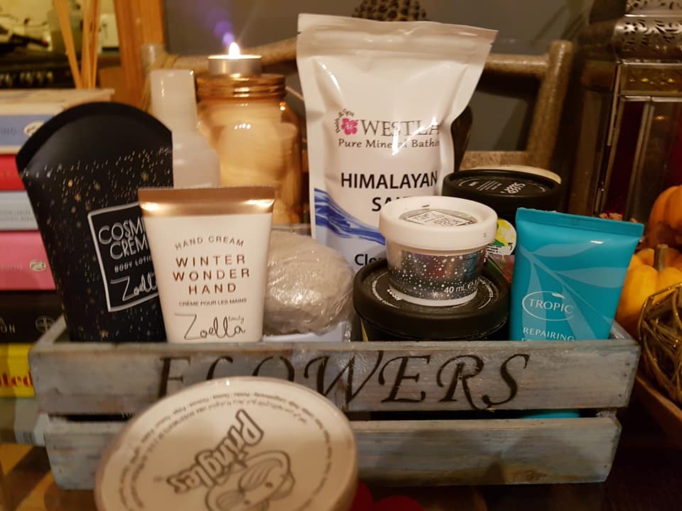 We lay out face masks, cleansers, scrubs, massage bars, feet masks, foot spa, moisturiser, pumice stones and nail care product. Everyone can take a pick at what suits there skin care needs and will use those items to create and fulfil there personal pamper.