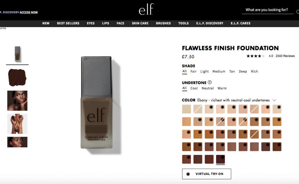 As you can see ELF have also got a really good variety of shades for different skin colours and work with influencers from all walks of life regularly showing their diverse clients, staff, influencers and consumers on their websites and social media!