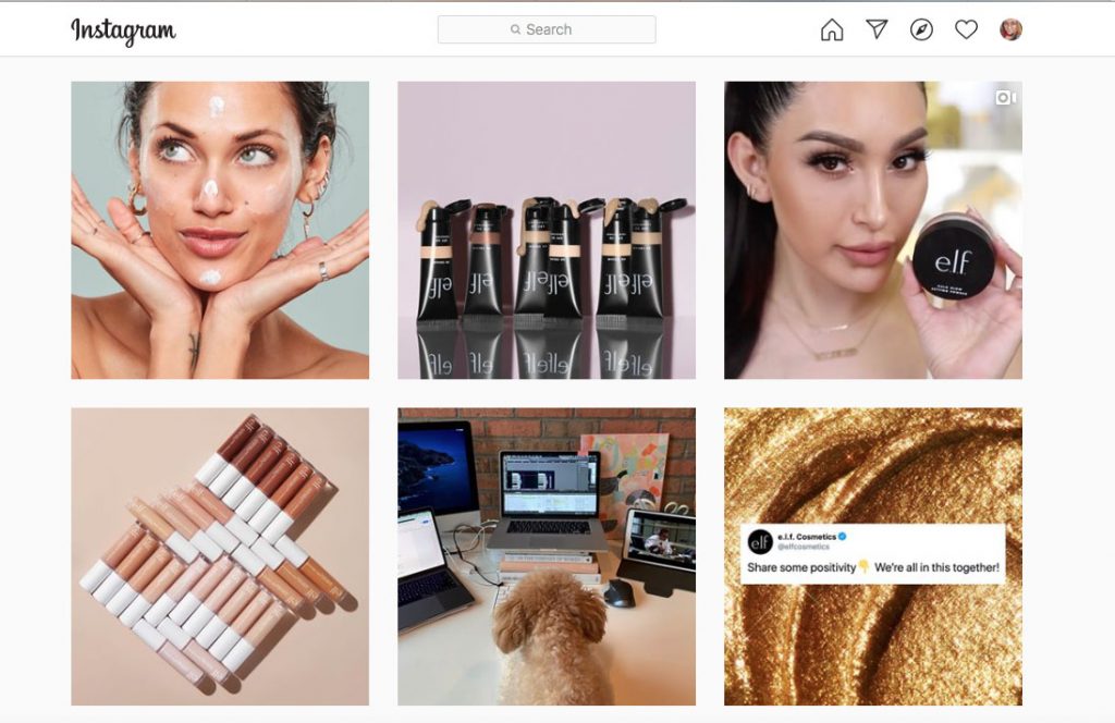 ELF are an affordable brand and constantly come up with new campaigns and products that really can suit so many people! They are always embracing people on their social media and are clearly a very inclusive, welcoming and fun brand. They even include little ones and animals on their Insta feed! It gives their brand a lovely welcoming feel.