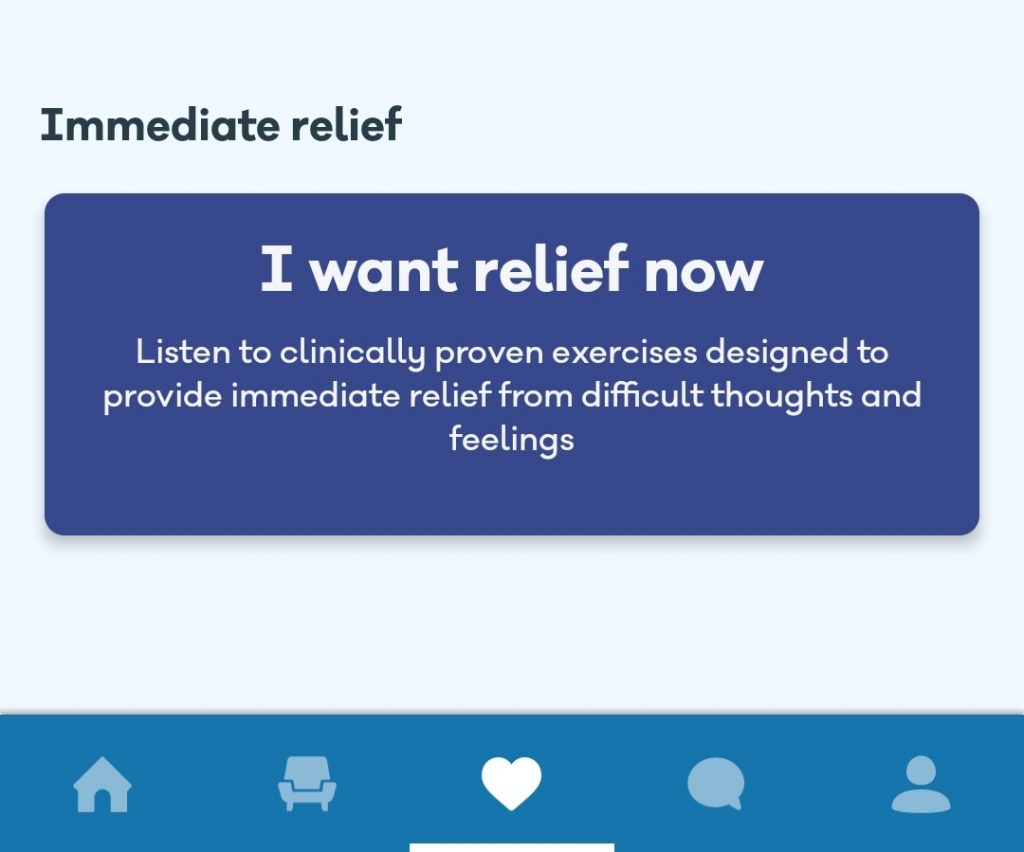 There is a section at the bottom of the check ins and self care section that is an immediate relief resource. If you click on this you will then be taken to the page with exercises to immediately help relieve emotions and help you with your current mood.