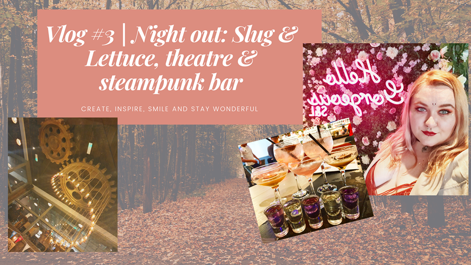We started our evening with having some food and drink at the Slug & Lettuce. I love this place! It accommodates for vegans and other dietary requirements and does wonderful cocktails – 2 for 1! You can’t beat that hehe. We take selfies, laugh, share some face glitter and dance at the table. It is a low key, small little bit of fun in a lovely bar before heading off to the city centre to see a theatre production. My friends bought me tickets to a production and that is why we are out and about together (Which is rare!).