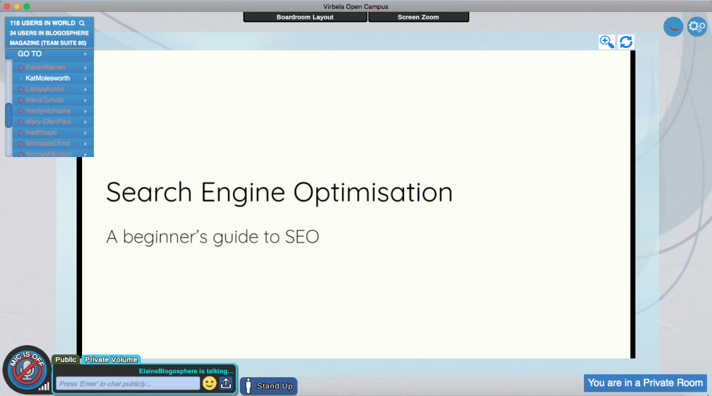 For the virtual event you will see the panel of avatars and hear the people talking as if you were right there in person!