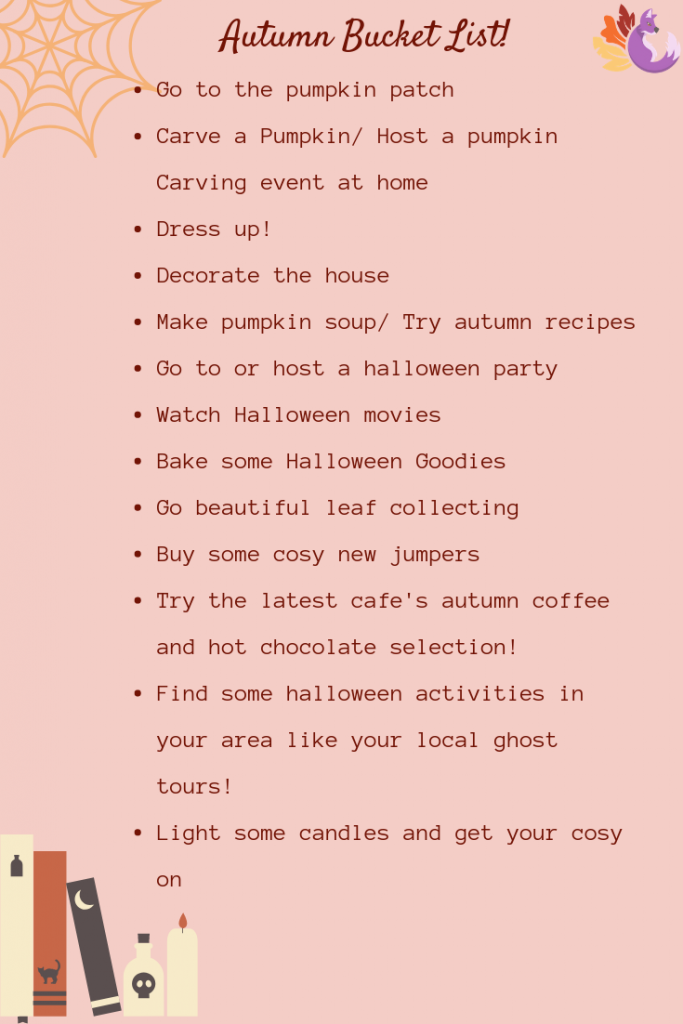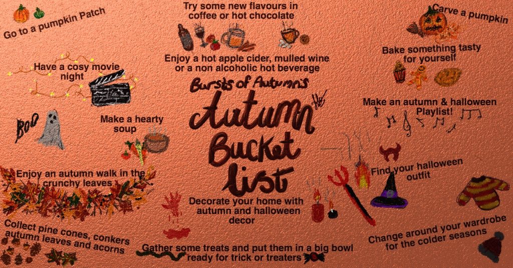 Scriptober Day #2 | Fall/ Autumn Bucket List! 2 October 2019 Be first to comment Pin It Stay tuned for more #Scriptober content on here and my media! Autumnblogger love shareBloggers tribeBloggingBucket ListChallengeEntertainmentFallFunHalloweenInfluencerInspireLifestylemotivationOctoberScriptober Share You may also like View Post Christmas and Winter memories | Blogmas 12! View Post Resources and products for a positive lifestyle | My Tips View Post 4 Considerations To Make You Change Your Attitude to Money | Collaborative post View Post The process of house selling and buying a new home | Lifestyle View Post Autumn essentials | #BlogtoberWithBoa Day 10 View Post LUSH hair products | Beauty review *AD gifted View Post Keeping your mental health in check during lockdown | Mental health series *AD View Post What I love about Autumn | #BlogtoberWithBoa Day 2 Previous Post Bursts Of Autumn Tuesday… In Life Bursts Of Autumn Tuesday Tips #6 View Post Next Post Scriptober Day #3 | Why… In Life Scriptober Day #3 | Why I love Halloween and Autumn? View Post