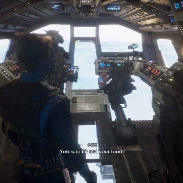 Approaching and leaving planets is great as you actually see the ship leave the planets surface from within the cockpit before entering light speed. Although not your control, it is a great way to fast travel rather than just a boring leave and arrive loading screen mechanism. It adds depth and imagination as well as immersion for the players experience.