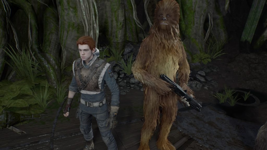 A few things that, for us were just weird and cringe-worthy. First of all was Cals face! I mean..What? It was just a little weird and wonky looking, and on multiple occasions we were just kind of looking and thinking of whether the actor who it’s based on looks like this or whether it was just a mo-cap error. Also the wookies fur.. What happened there Remedy? It was so bizarre and stiff looking and took away from the natural “Awh” effect of the species from all of the films. Considering Kashyyyk is the land of the wookies, and it’s a planet you revisit a few times throughout the game, I thought they would’ve taken more pride and time in making the main inhabitants of the planet look a little better considering they are such a huge part of the star wars universe as a whole. The graphics on Kashyyyk are lovely, so It was a little disappointing upon closer look at the furry 8 foot majestic beings!