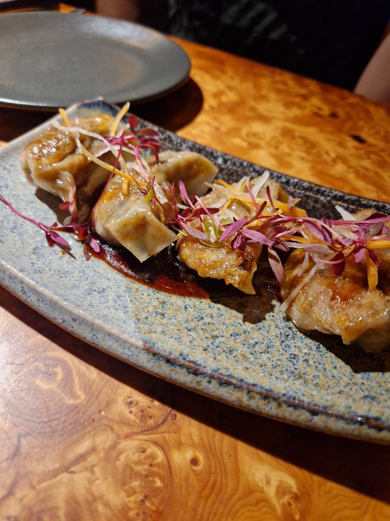 Lewis had the pulled pork gyoza, which he loved. They were the perfect mix of crispy and soft. He then went with the Japanese Black Wagyu (the most expensive option..because he’s worth it), served on a Himalayan salt rock, accompanied by enoki mushroom and a banana, shallot soy. He was in awe. It was perfectly cooked and just the right amount, despite seeming small. He was contently full after finishing. He paired this with the duck egg and Chinese sausage fried rice. He thoroughly enjoyed the entire meal.