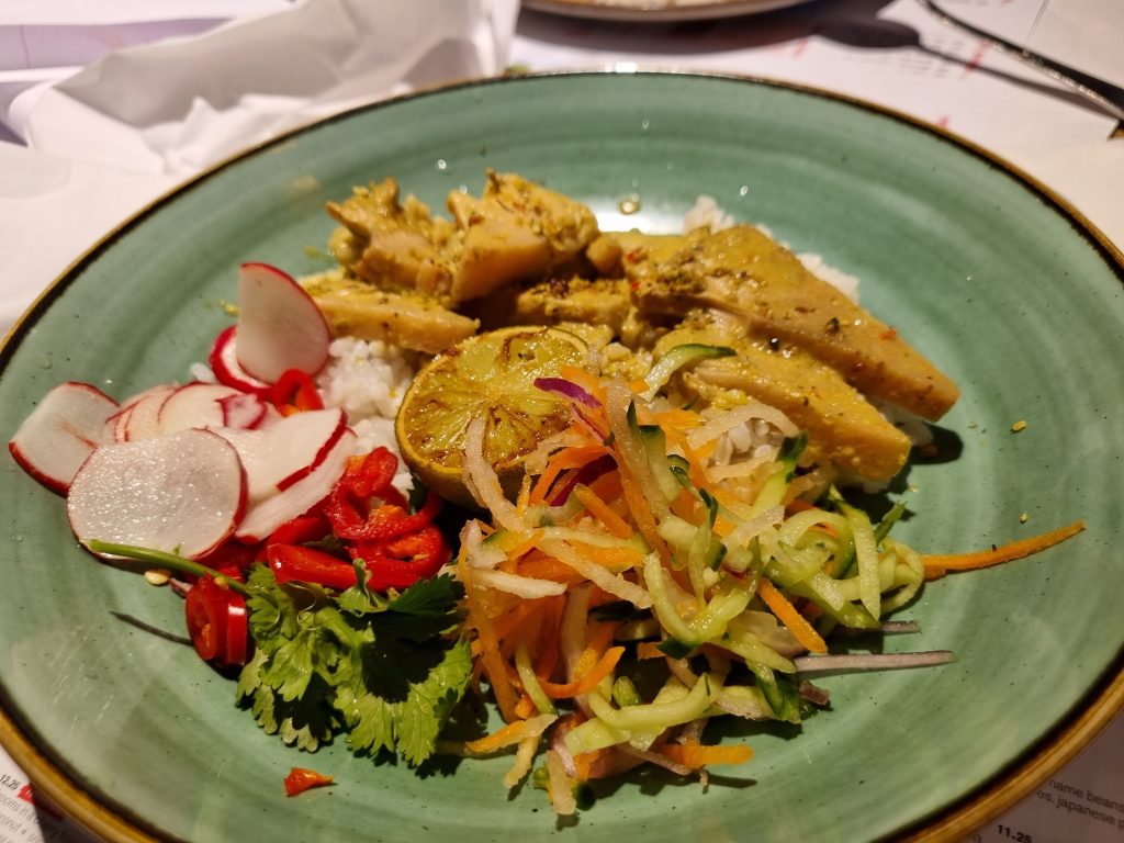 This was a light and refreshing dish but not one I personally would go for again. My mum actually had this and I tried some and although it was fragrant, refreshing and tasty, I wasn’t a fan of the texture of the jackfruit. It’s a nice dish overall but just not for me. It is fragrant saucy jackfruit pieces accompanied by horse radish, chillies, fresh veg and sticky rice.