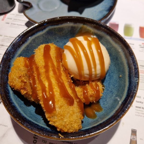 For dessert we had banana katsu with vegan caramel ice cream and a chocolate orange slice. Both were absolutely scrumptious and I could them over and over again. Even the kids loved them!